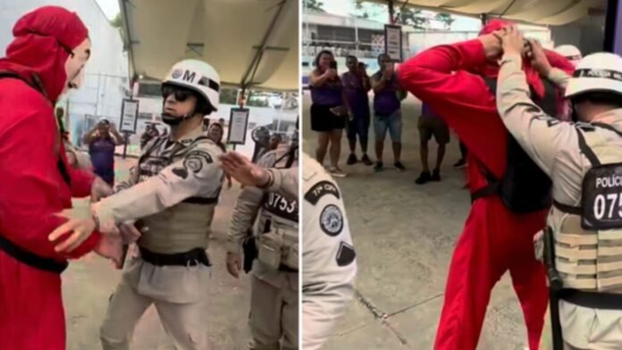 O cantor Xanddy Harmonia compartilhou nas redes sociais um vídeo bem-humorado em que aparece fantasiado de um personagem da série La Casa de Papel e é abordado por policiais militares no meio da folia do Carnaval de Salvador.