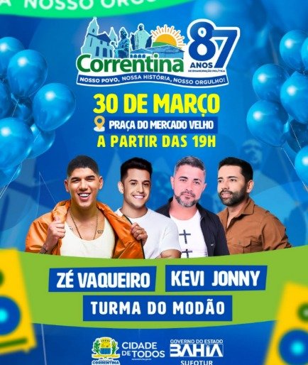 No dia 30 de março de 2025, Correntina se prepara para receber, os melhores e maiores nomes da música brasileira da atualidade, com atrações de peso, Zé Vaqueiro, Kevi e Jonny e Turma do Modão, promete vir com tudo para animar a galera da cidade e também visitantes de outros municípios. Em parceria com o Governo do Estado da Bahia através da Superintendência de Fomento ao Turismo, a promessa é que seja um evento inesquecível e atraia pessoas de todas as regiões.