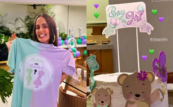 Carol, que está radiante na gravidez, não escondeu a emoção. Thiaguinho, sempre sereno, também mostrou que já está todo babão pelo herdeiro.