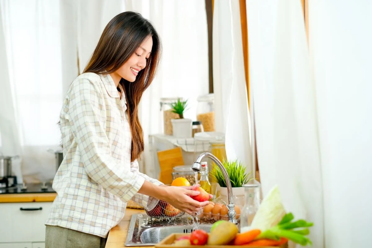 O ato de lavar bem as mãos antes de manusear os alimentos é essencial para prevenir qualquer tipo de contaminação. Além disso, é importante lavar frutas e vegetais em água corrente para remover sujeiras e possíveis resíduos de pesticidas. Para uma higienização mais eficaz, recomenda-se deixá-los de molho por cerca de 15 minutos em uma solução com 1 litro de água potável e 1 colher de sopa de hipoclorito de sódio.