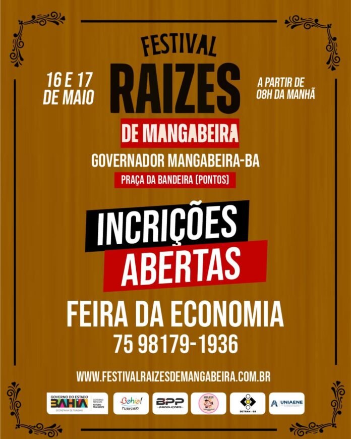 O município de Governador Mangabeira, no Recôncavo Baiano, se prepara para receber mais uma edição do Festival Raízes de Mangabeira, nos dias 16 e 17 de maio, a partir das 8h da manhã, na tradicional Praça da Bandeira, no centro da cidade.