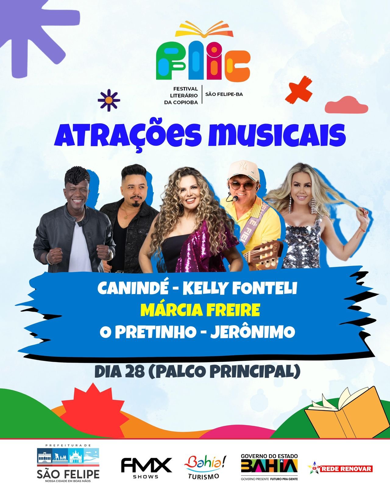 O encerramento do FLIC acontece em grande estilo no dia 28, com shows no palco principal reunindo grandes nomes da música baiana. Estão confirmadas as apresentações de Canindé, Kelly Fonteli, Márcia Freire, O Pretinho e Jerônimo, prometendo animar o público com muito axé, MPB e ritmos da nossa terra.