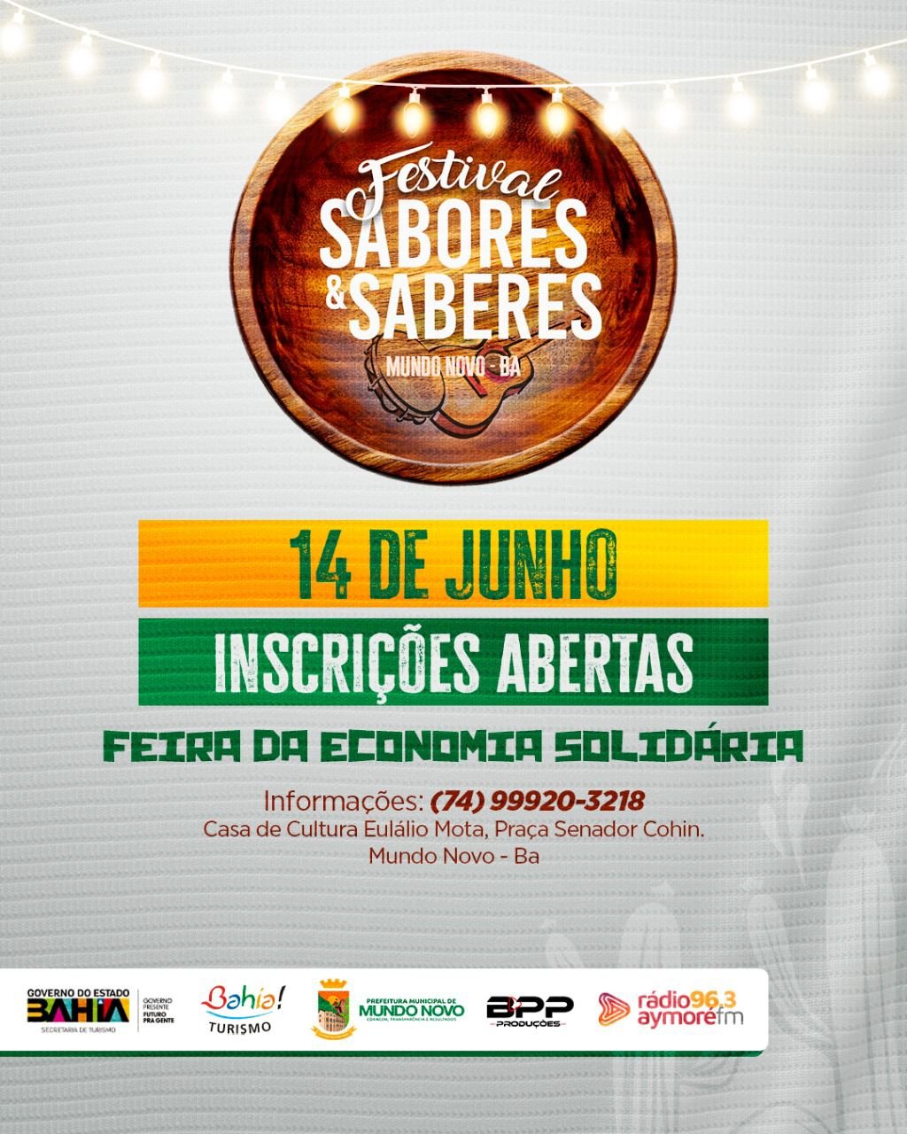 O município de Mundo Novo, na Bahia, já respira os ares de tradição, cultura e empreendedorismo com a chegada do Festival Sabores & Saberes, que acontece no dia 14 de junho. A iniciativa promete reunir gastronomia, saberes populares e desenvolvimento local em um grande encontro de sabores e histórias.