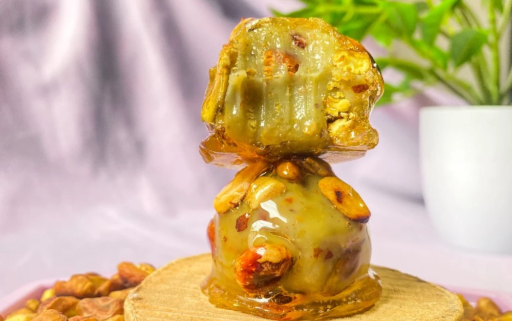 Bala baiana de pistache é vendida em Salvador — Foto: Balas de Vidro da Carola