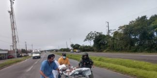 Mulher morre após caminhão onde estava tombar em rodovia do sul...