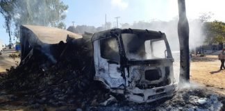 Caminhão pega fogo após bater em carreta na BR-116, na Bahia