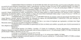 Piritiba: MPF instaura inquérito para apurar licitação de material de expediente