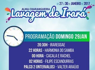 A prefeitura divulgou a programação e os horários deste domingo na Lavagagem de Irará: