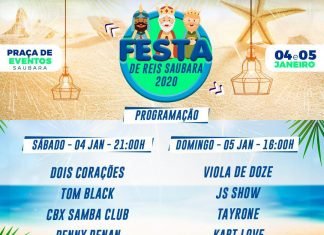 A Prefeitura de Saubara, lançou ontem a programação da Festa de Reis 2020. O evento será realizado nos dias 04 e 05 de janeiro e contará com a grade repleta de atrações.