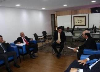 O presidente do Tribunal de Contas dos Municípios, conselheiro Francisco de Souza Andrade Netto, e o presidente do Tribunal de Contas do Estado,...